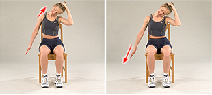 Relax shoulders and rotate arms/ hands so that thumbs point backward.